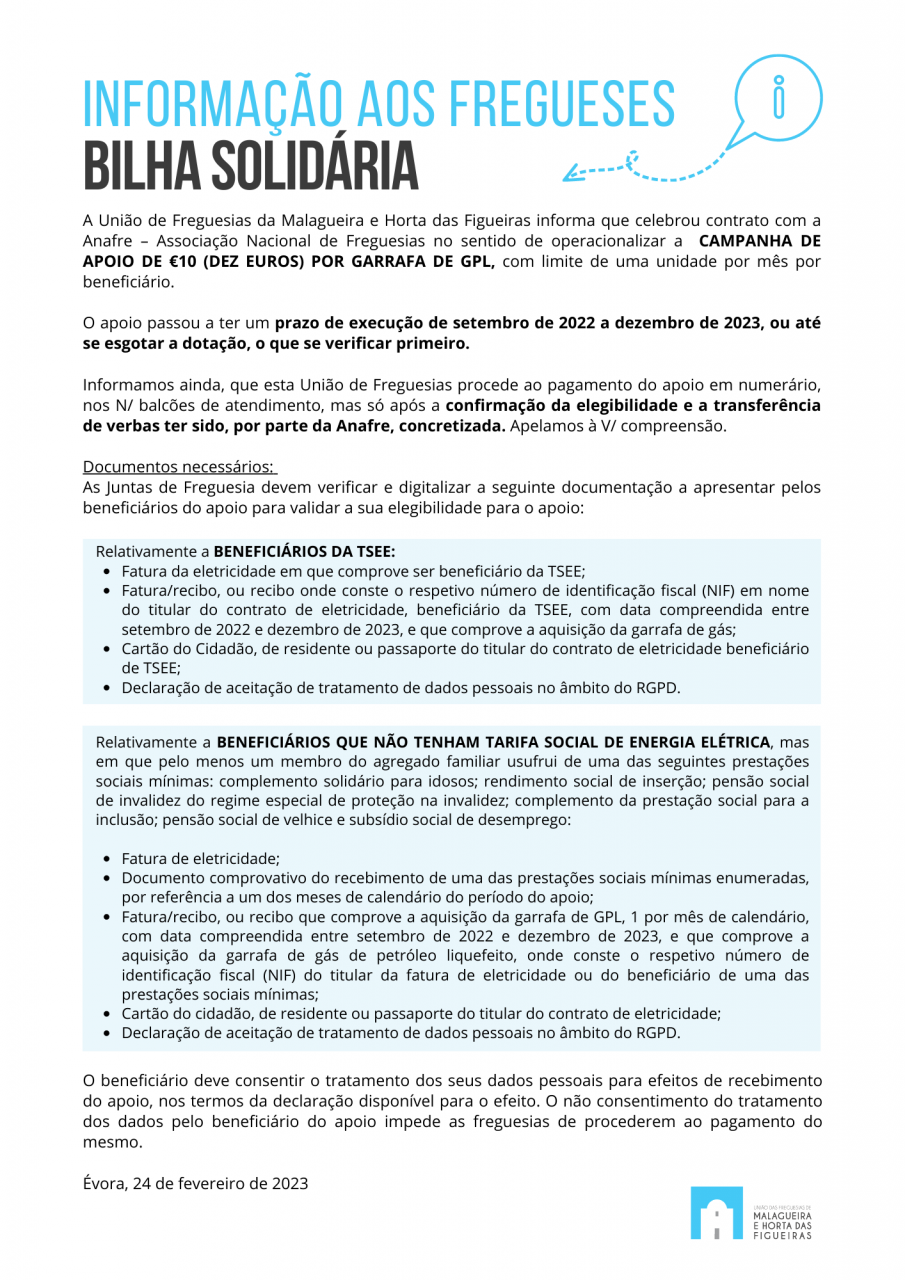 INFORMAÇÃO AOS FREGUESES | Campanha Bilha Solidária