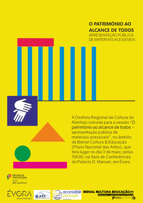A DRCAlentejo organizou no dia 3 de maio, em Évora, a sessão Património ao Alcance de Todos - Apresentação Pública de Materiais Acessíveis, no âmbito da Bienal Cultura & Educação 2023 (PNA).