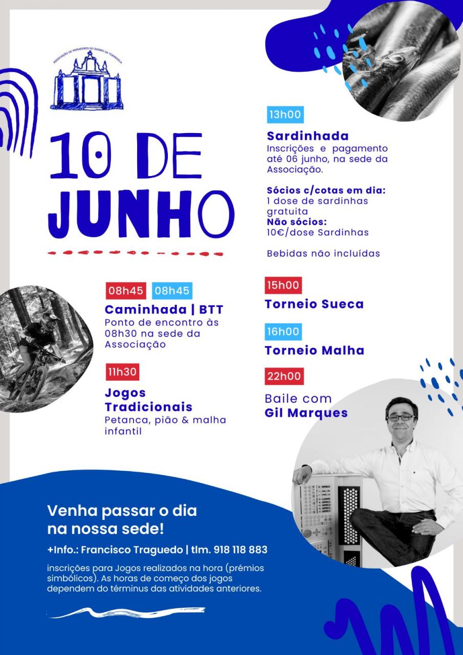 13h00 - Sardinhada (inscrições e pagamento até 06 junho, na sede da Associação)